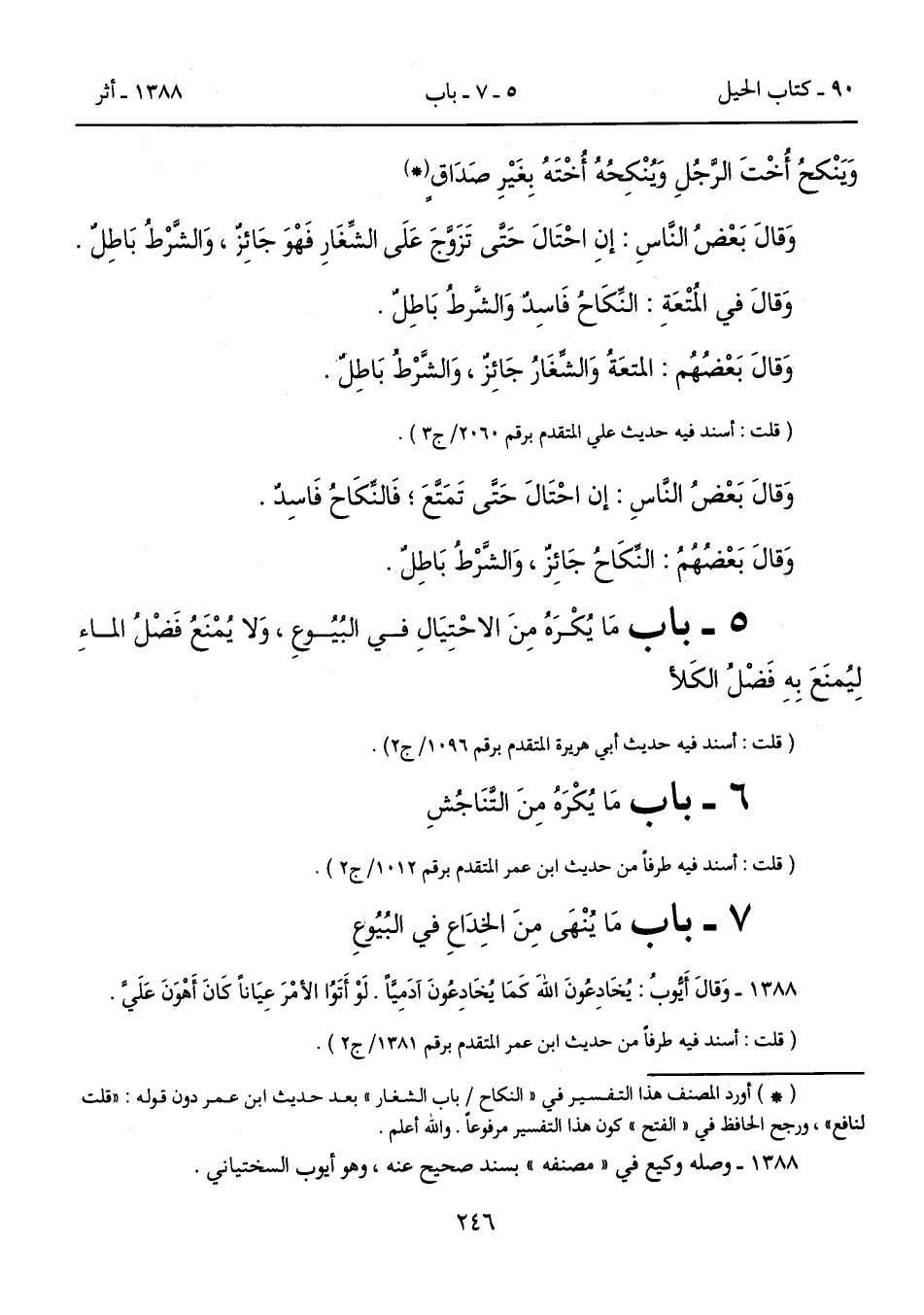 5 - باب مَا يُكْرَهُ مِنَ الاحْتِيَالِ في البُيُوعِ، وَلاَ يُمْنَعُ فَضْلُ الْمَاءِ لِيُمْنَعَ بِهِ فَضْلُ الْكَلأ.