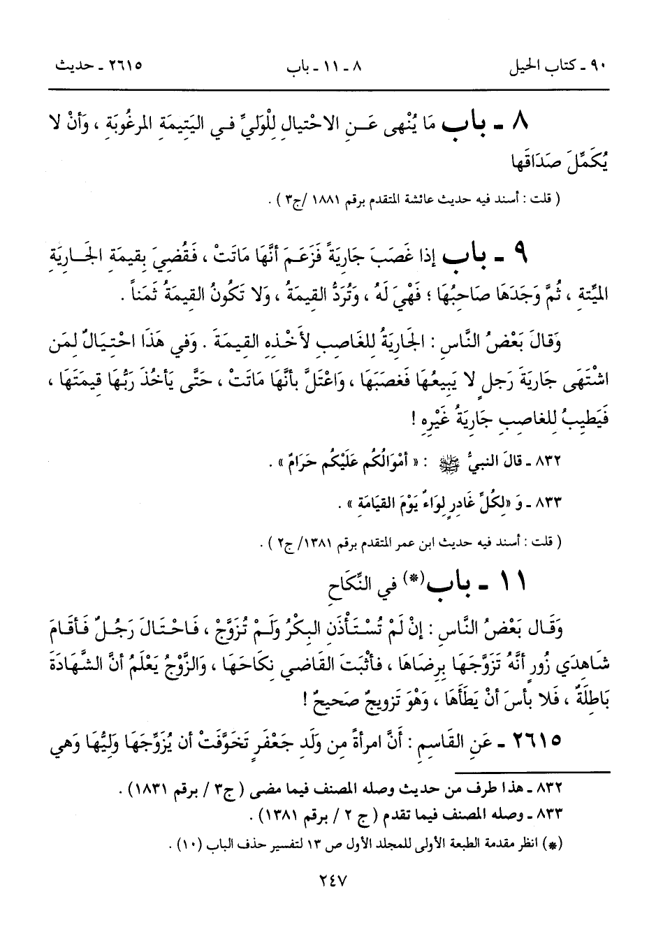 (*) انظر مقدمة الطبعة الأولى للمجلد الأول ص 13 لتفسير حذف الباب (10).