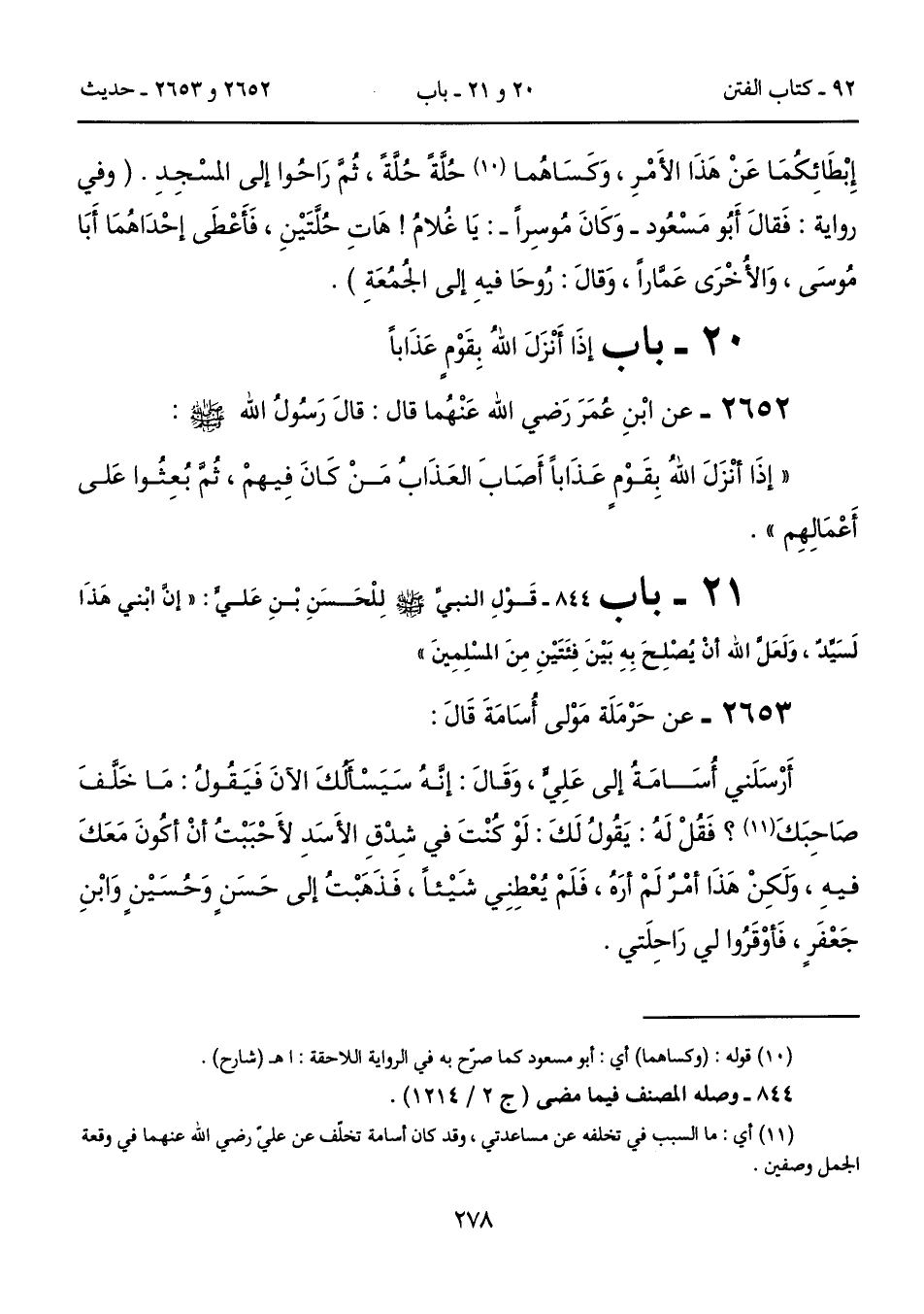21 - باب 844 - قَوْلِ النبيِّ - صلى الله عليه وسلم - لِلْحَسَنِ بْنِ عَلىٍّ: "إنَّ ابْني هَذَا لَسَيِّدٌ، وَلَعَلَّ الله أنْ يُصْلِحَ بِهِ بَيْنَ فِئَتَيْنِ مِنَ المسْلِمِينَ"