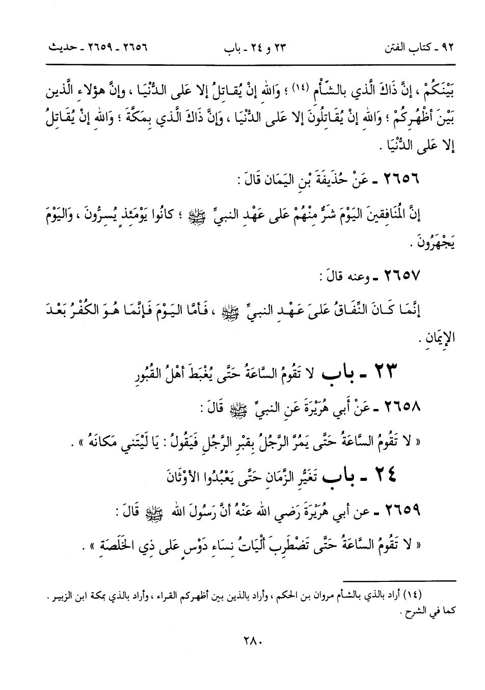 "لا تَقُومُ السَّاعَةُ حَتَّى يَمُرَّ الرَّجُلُ بِقبْرِ الرَّجُلِ فَيَقُولُ: يَا لَيْتَني مَكانَهُ".