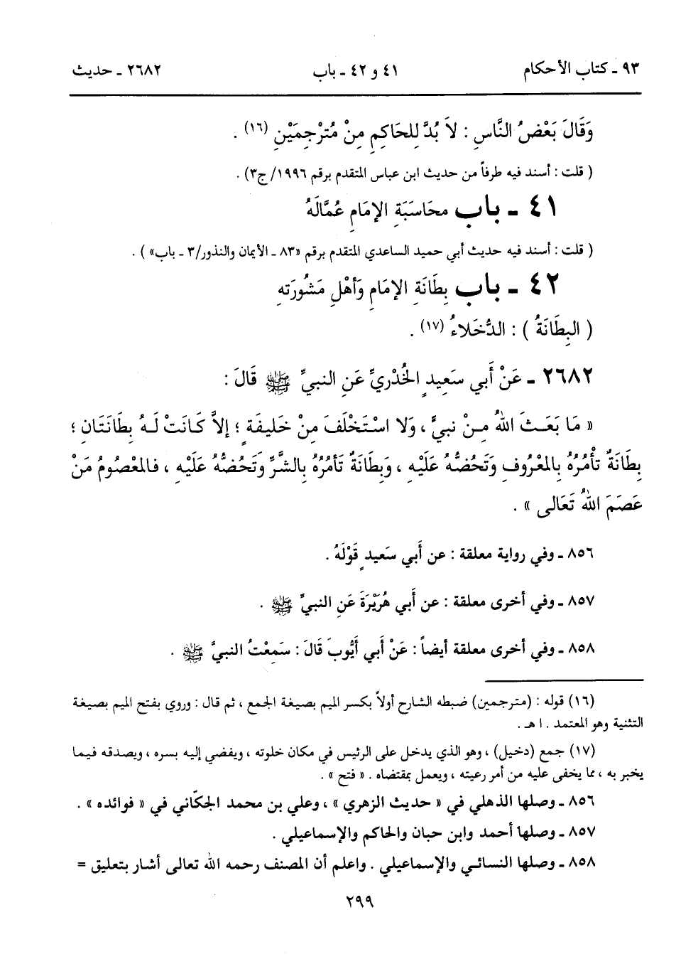 42 - باب بِطَانَةِ الإمَامِ وَأهْلِ مَشُورَتهِ
