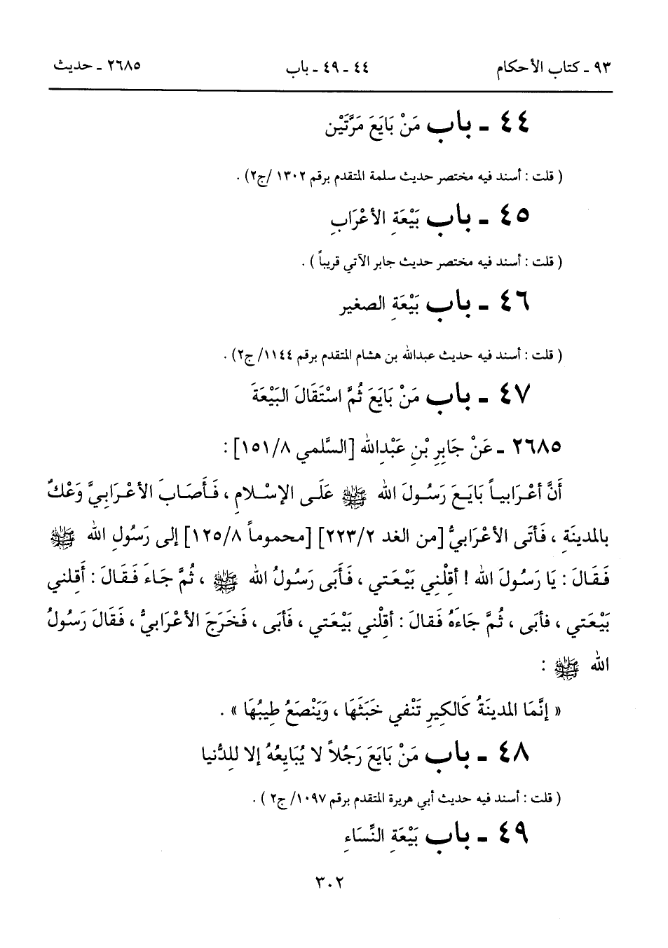 47 - باب مَنْ بَايَعَ ثُمَّ اسْتَقَالَ البَيْعَةَ