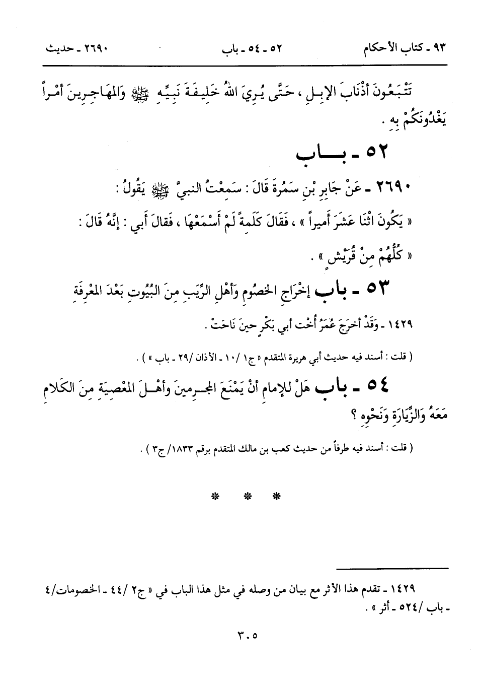 54 - باب هَلْ للإمامِ أنْ يَمْنَعَ المجرِمينَ وأهْلَ المعْصِيَةِ مِنَ الكَلامِ مَعَهُ وَالزِّيَارَةِ وَنَحْوِهِ؟
