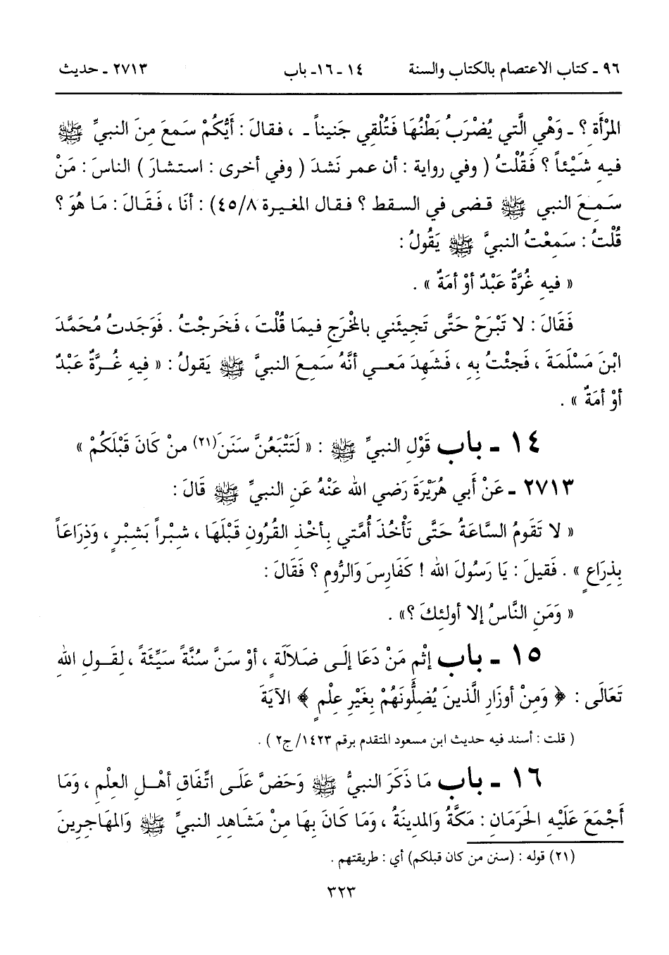 14 - باب قَوْلِ النَّبِيِّ - صلى الله عليه وسلم -: "لَتَتْبَعُنَّ سَنَنَ (21) مَنْ كَانَ قَبْلَكُمْ"