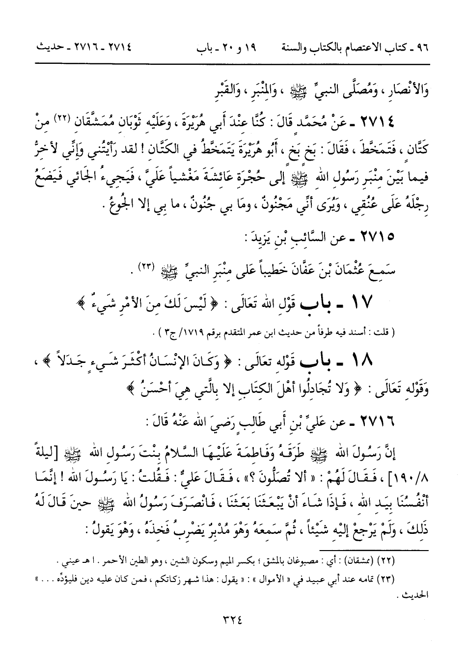18 - باب قَوْلهِ تعَالَى: (وَكَانَ الإنْسَانُ أكْثَرَ شَيءٍ جَدَلاً)، وَقَوْلهِ تَعَالَى: (وَلا تُجَادِلُوا أهْلَ الكِتَابِ إلا بِالَّتي هِيَ أحْسَنُ)