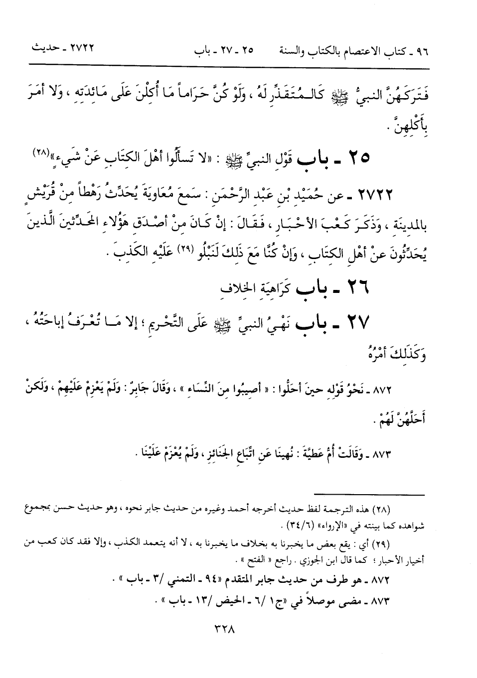 25 - باب قَوْلِ النبيِّ - صلى الله عليه وسلم -: "لا تَسأَلُوا أهْلَ الكِتَابِ عَنْ شَيءٍ" (28)