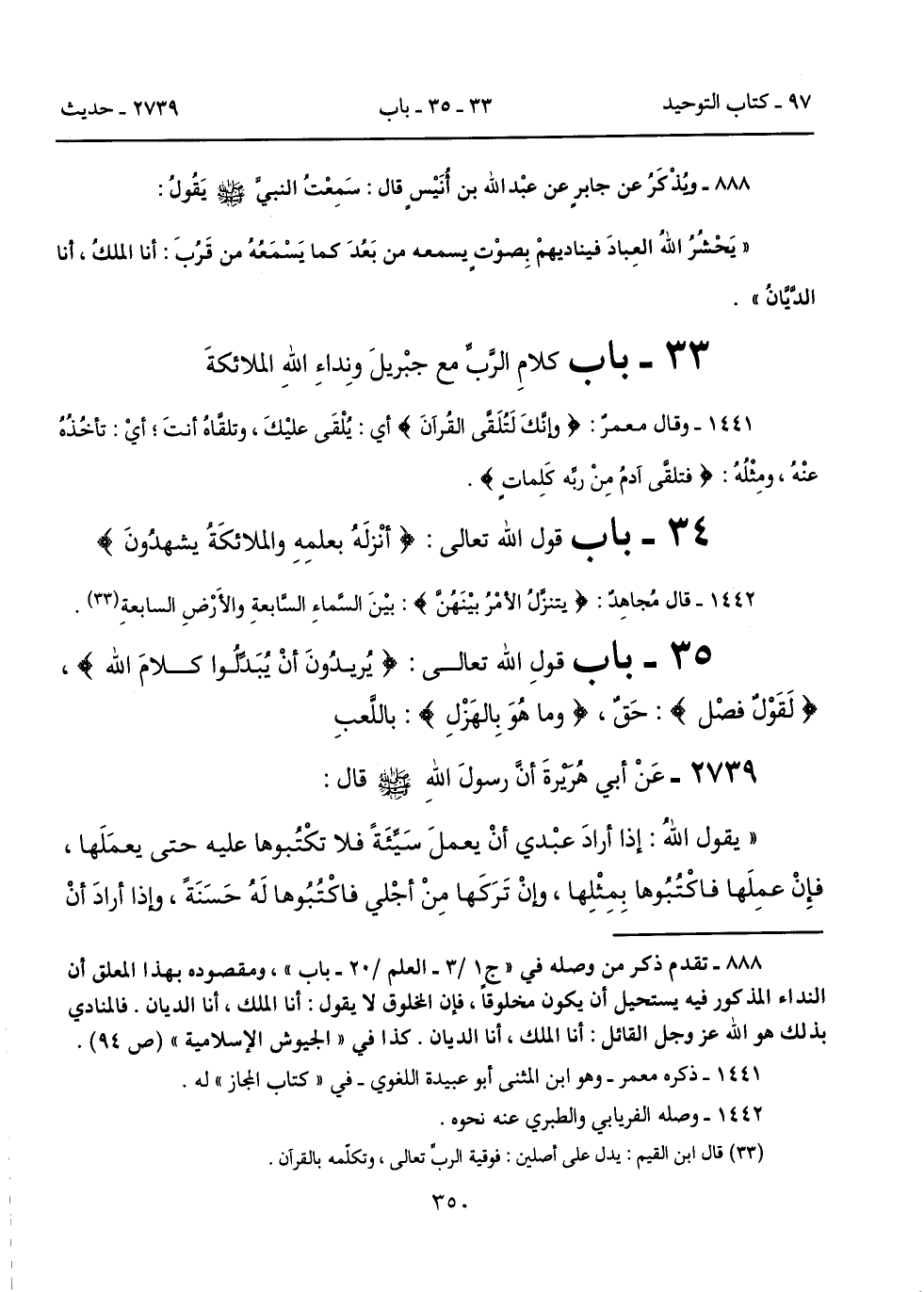 35 - باب قولِ الله تعالى: {يُرِيدُونَ أَنْ يُبَدِّلُوا كَلَامَ اللَّهِ}، {لَقَوْلٌ فصْل}: حَقٌّ، {وما هُوَ بِالهَزْلِ}: باللَّعبِ