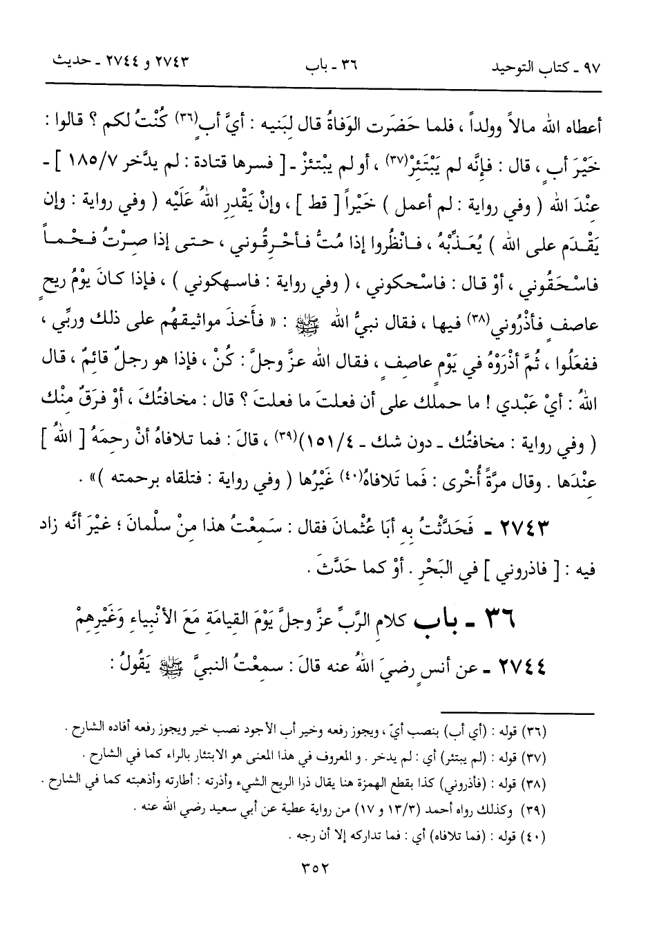 36 - باب كلامِ الرَّبِّ عزَّ وجلَّ يَوْمَ القِيامَةِ مَعَ الأنْبِياءِ وَغَيْرِهِمْ