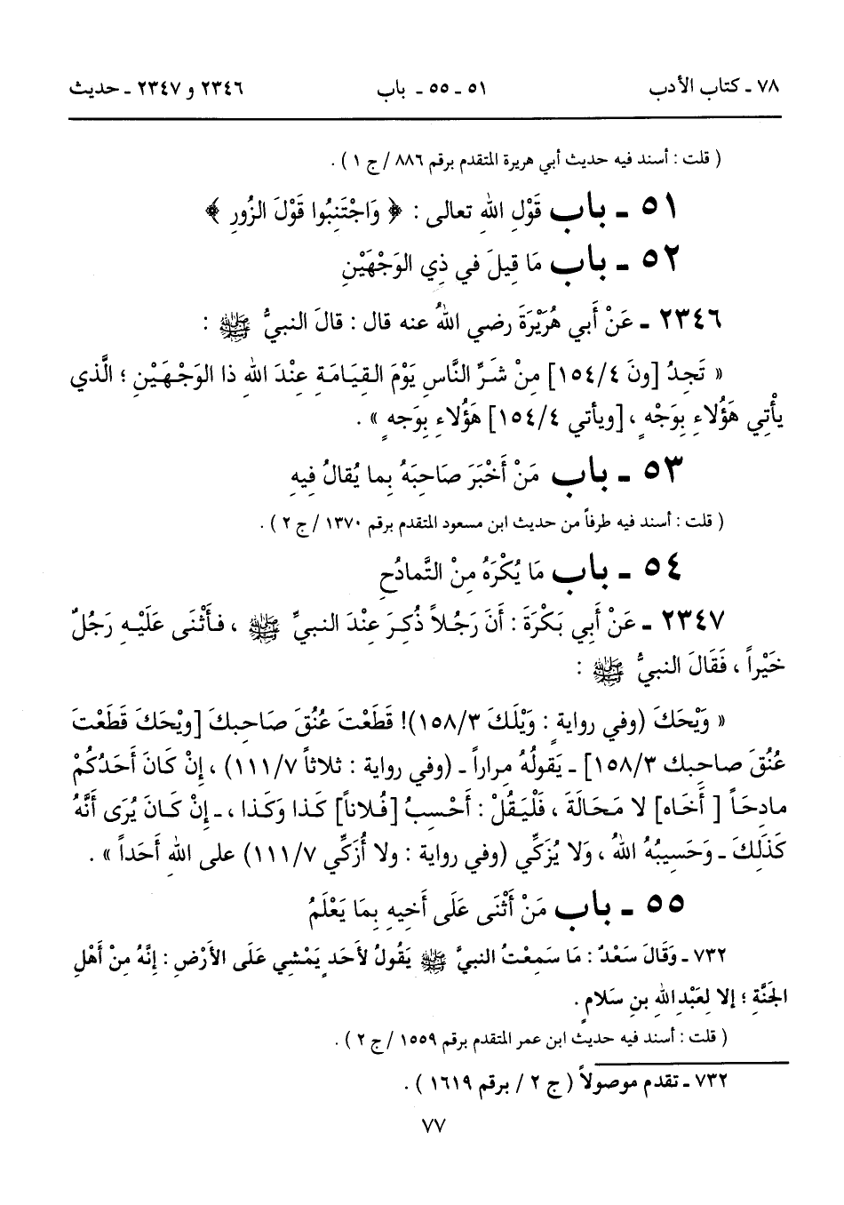 52 - باب مَا قِيلَ في ذِي الوَجْهَيْنِ