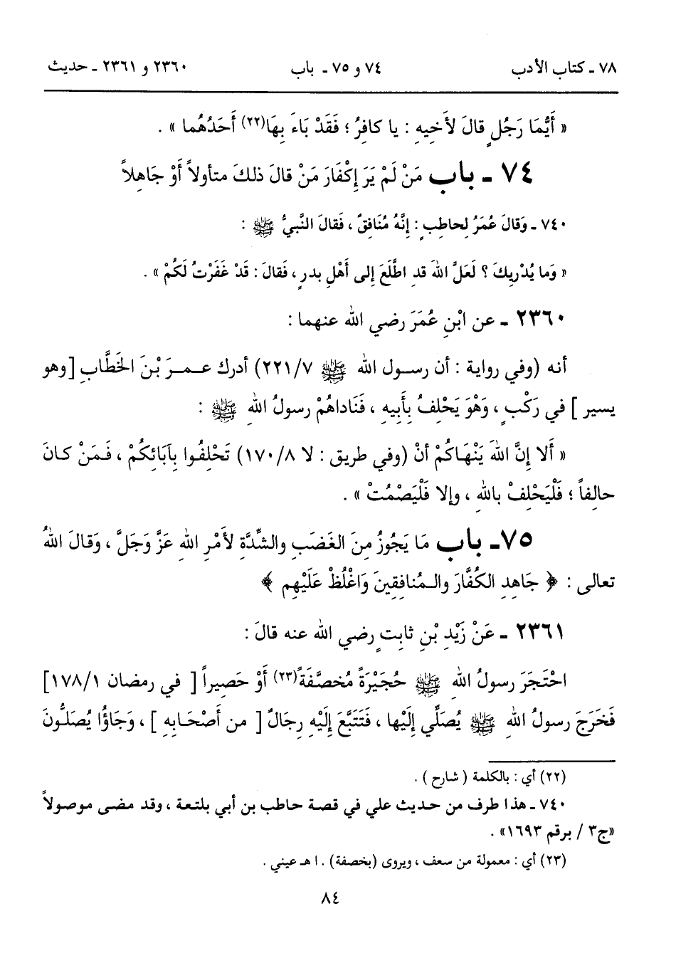 75 - باب مَا يَجُوزُ مِنَ الغَضَبِ والشِّدَّةِ لأَمْرِ الله عَزَّ وَجَلَّ، وَقالَ اللهُ تعالى: {جَاهِدِ الكُفَّارَ والمُنافِقِينَ وَاغْلُظْ عَلَيْهِم)
