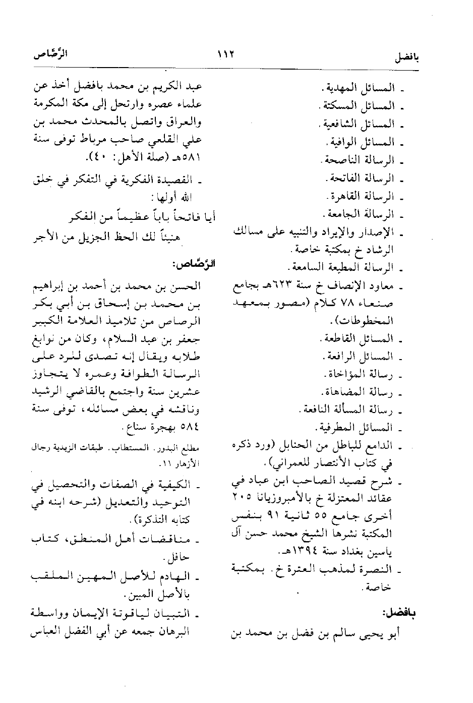 - الحسن بن محمد بن احمد بن إبراهيم بن محمد إسحاق بن أبي بكر الرصاص من تلاميذ العلامة الكبير جعفر بن عبد السلام وكان من نوابغ طلابه ويقال إنه تصدي للرد على الرسالة الطوافة وعمره لا يتجاوز عشرين سنة واجتمع بالقاضي الرشيد وناقشه في بعض مسائله توفى سنة 584 بهجرة سناع.