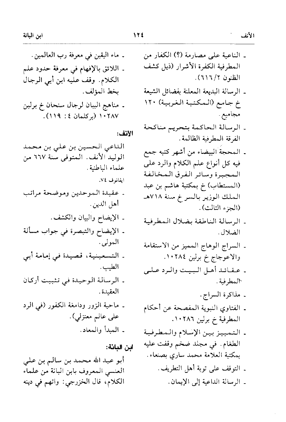 - مناهج البينان لرجال سنحان خ برلين 10287 بركلمان4: 119.