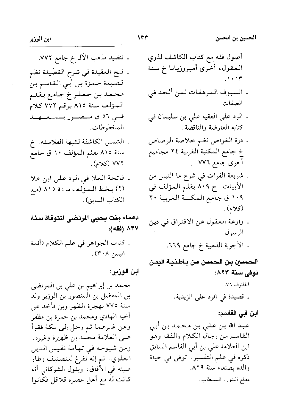 - محمد بن إبراهيم بن علي بن المرتضي بن المفضل بن المنصور بن الوزير ولد سنة 775 بهجرة الظهراوين فأخذ عن غيرهما ثم رحل إلى مكة فقرأ على العلامة محمد بن ظهيرة وغيره ومن شيوخه في تهامة نفيس الدين ومن شيوخه في تهامة نفيس الدين العلوي ثم إنه تفرغ للتصنيف وطار صيته في الآفاق ويقول الشوكاني أنه كانت له مع أهل عصره قلاقل فكانوا.