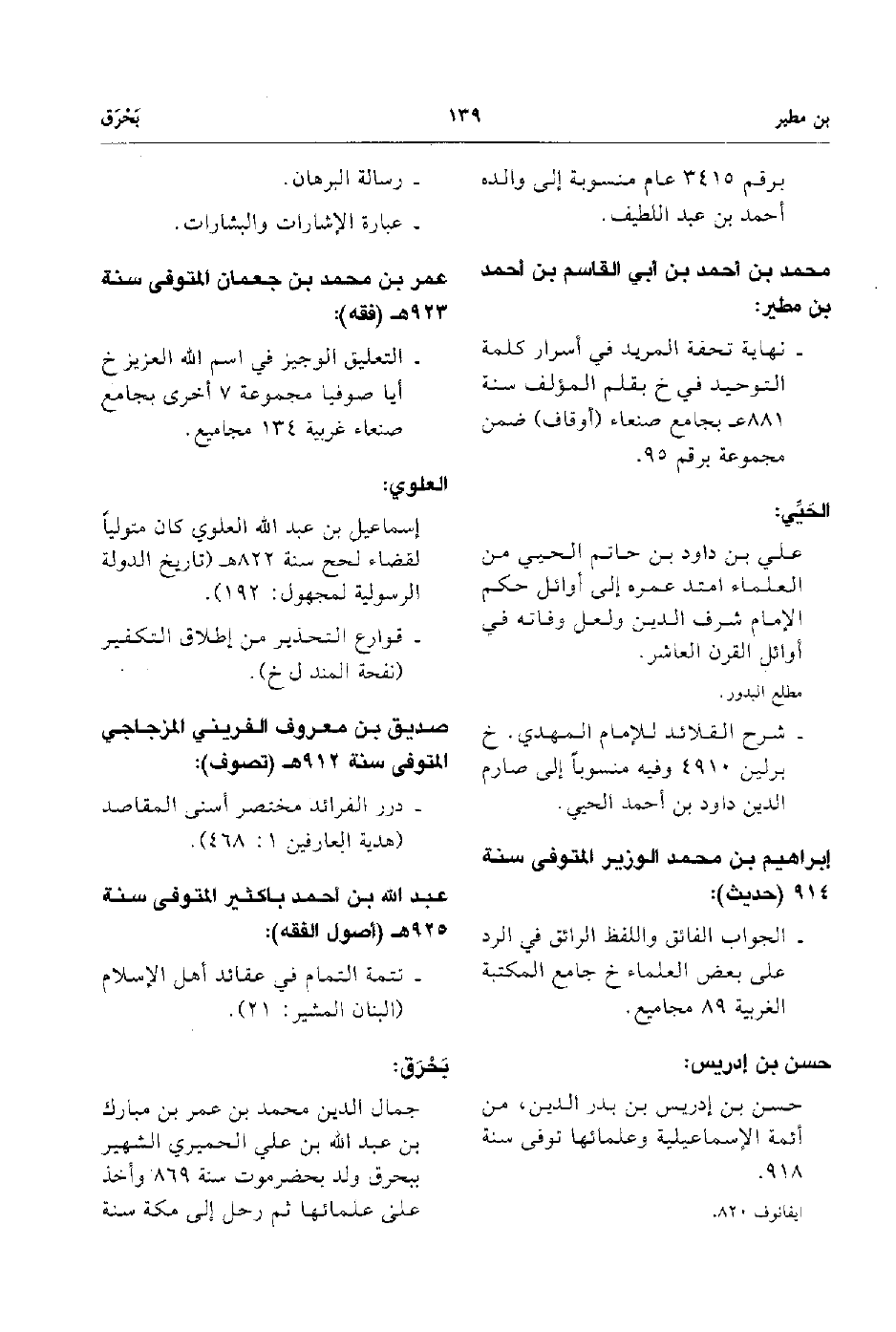 - جمال الدين محمد بن عمر بن مبارك بن عبد الله بن على الحميري اشهير ببحرق ولد بحضرموت سنة869 وأخذ على علمائها ثم رحل إلى مكة سنة