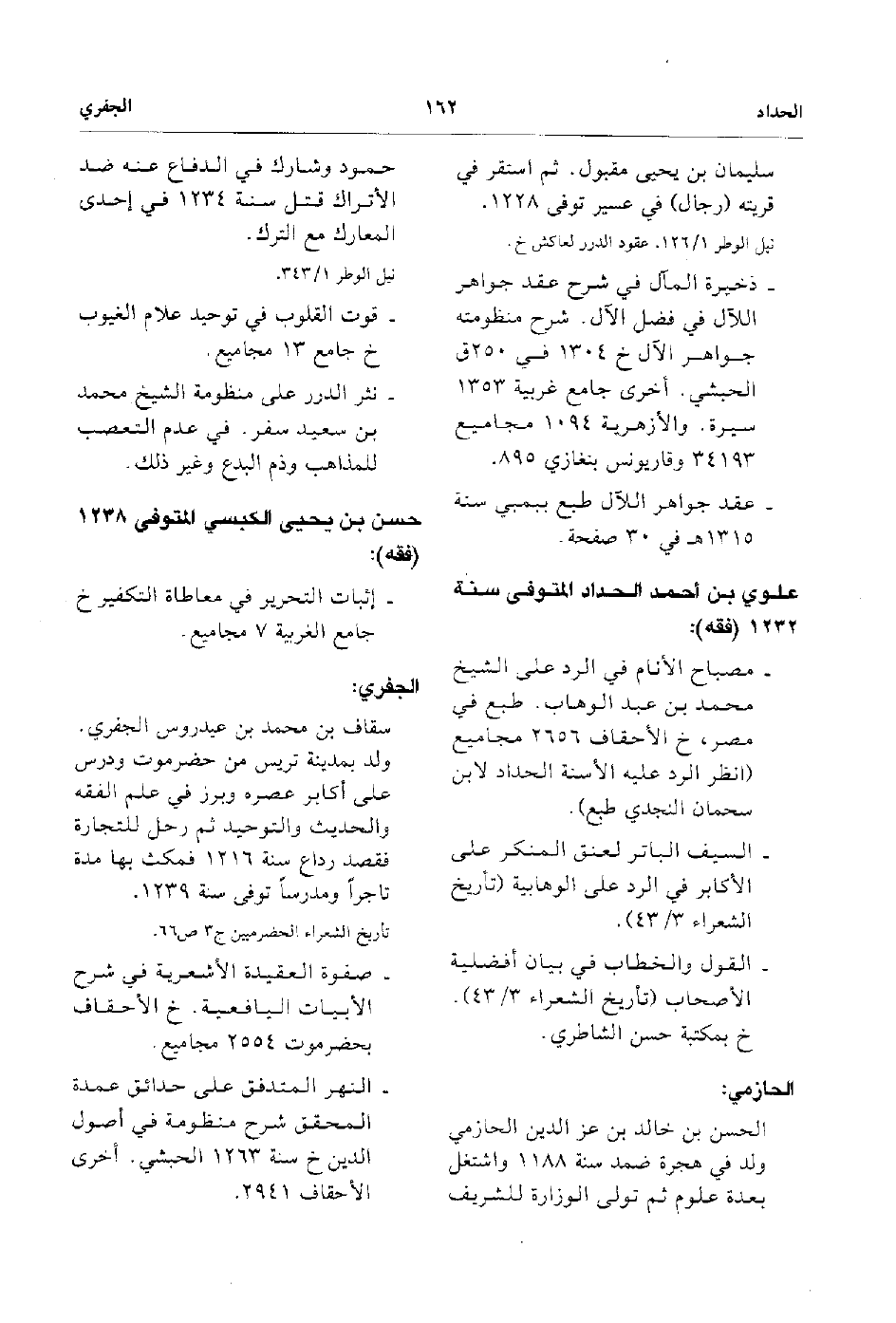 سليمان بن يحيى مقبول ثم استقر في قريته رجال في عسير توفي 1228. ذخيرة المال في شرح عقد جواهر اللآل في فضل الآل شرح منظومته جواهر الآل خ 1304 في 250 ق الحبشي أخري جامع غربية 1353 سيرة والأزهرية 1094 مجاميع سيرة والأزهرية 1094 مجاميع 34193 وقاريونس بنغازي 895 عقد جواهر الآل طبع ببمبي سنة 1315هـ في 30 صفحة.