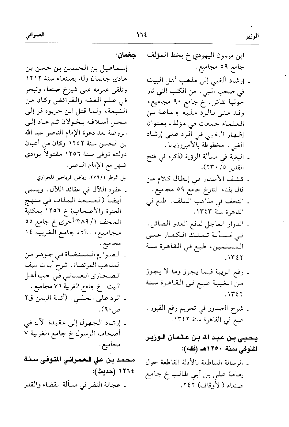 يحيى بن عبد الله بن عثمان الوزير المتوفى سنة 1250هـ فقه:
