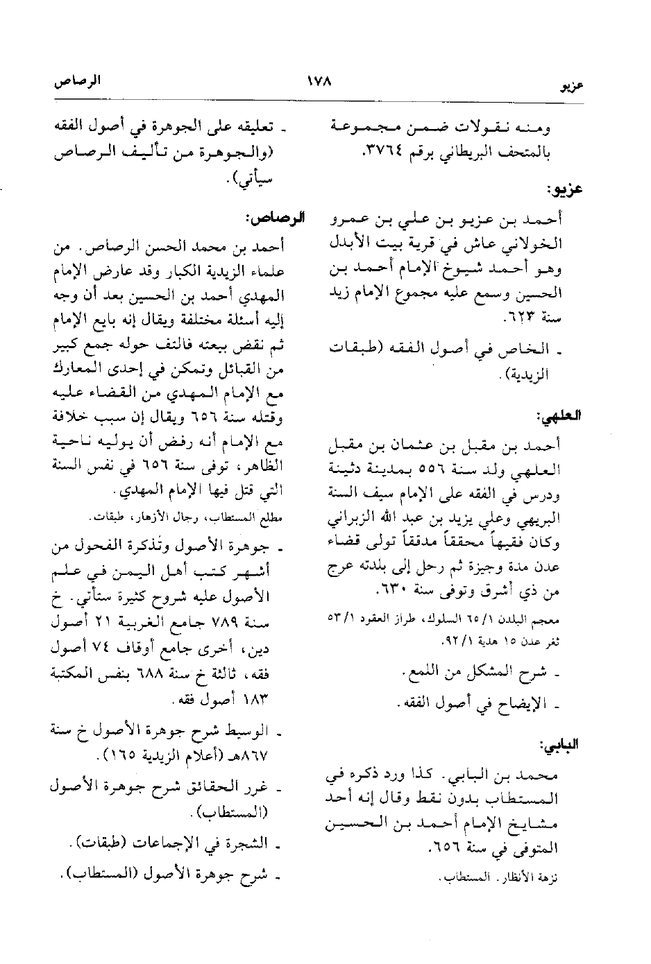 - جوهرة الأصول وتذكرة الفحول من أشهر كتب أهل اليمن ستأتي خ سنة 789 جامع الغربية 21 أصول دين أخري جامع أوقاف 74 أصول فقه ثالثة خ سنة 688 بنفس المكتبة 183 أصول فقه.