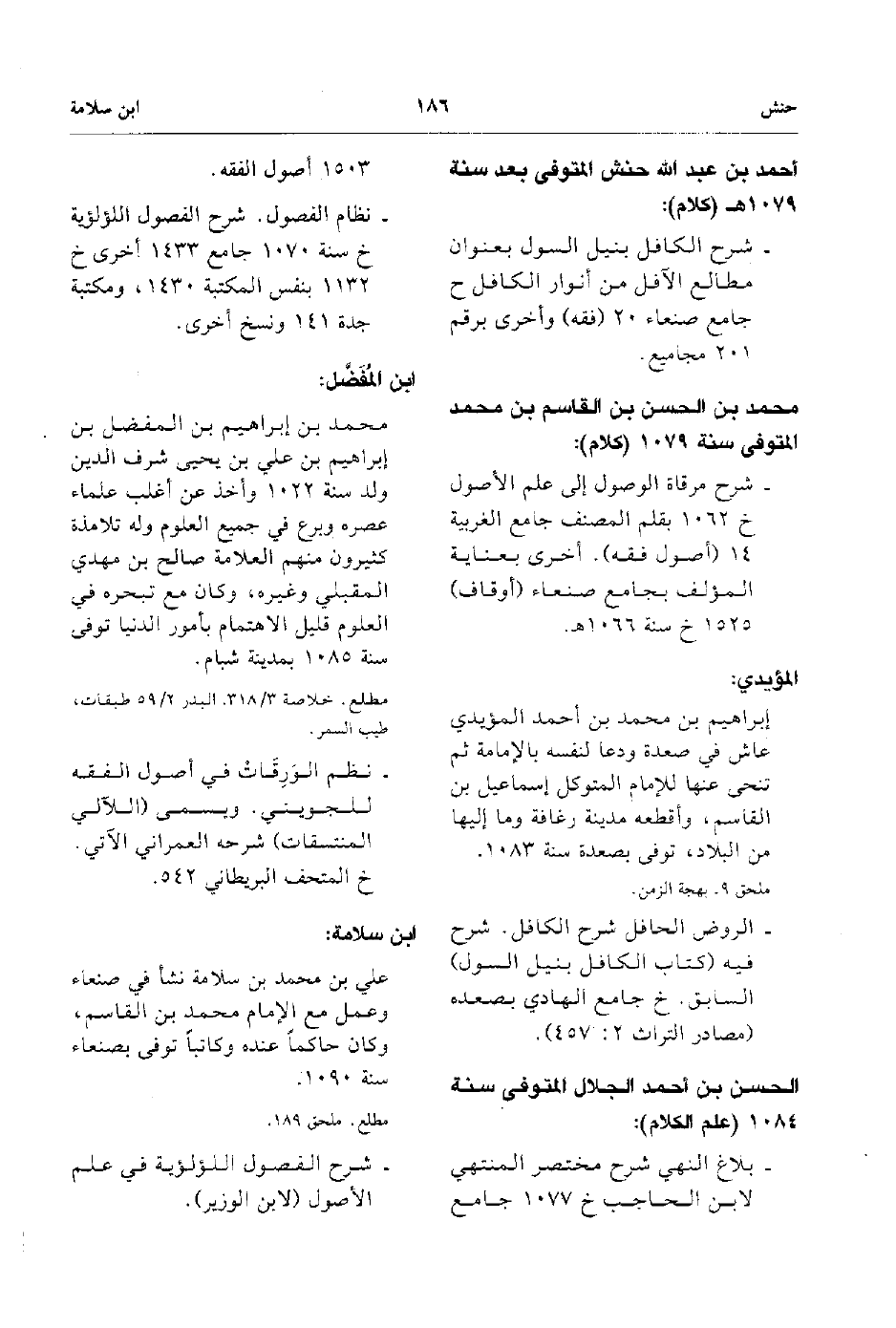 - علي بن محمد بن سلامة نشأ في صنعاء وعمل مع الإمام محمد بن القاسم وكان حاكماً عنده وكاتباً توفى بصنعاء سنة 1090. شرح الفصول اللؤلؤية في علم الأصول لابن الوزير.