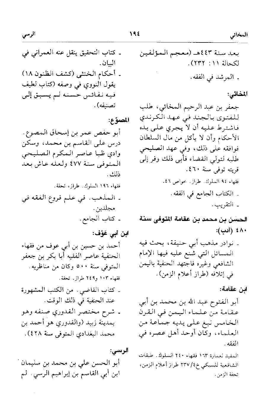 - جعفر بن عبد الرحيم المخائي طلب للفتوي بالجند في عهد الكرندي فاشترط عليه أن لا يجري على يده الأحكام وأن لا يأكل من مال السلطان فوافقه على ذلك وفي عهد الصليحي طلبه لتولي القضاء فأبي ذلك وفر إلى قريته توفى سنة 460. الكتاب الجامع في الفقه. التقريب.
