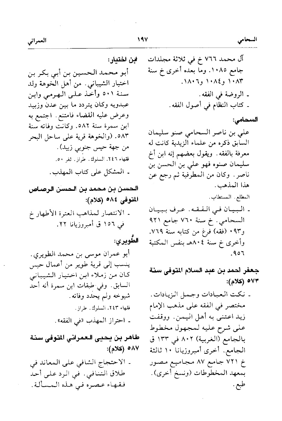 طاهر بن يحيى العمراني المتوفى سنة 587 كلام: