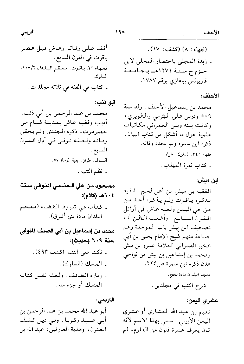 - محمد بن إسماعيل الأحنف ولد سنة 509 ودرس على الهرمي والطويري وكانت بينه وبين العمراني مكاتبات علمية حول ما أشكل من كتاب البيان ذكره ابن سمرة ولم يحدد وفاته. كتاب ثمره المهذب.