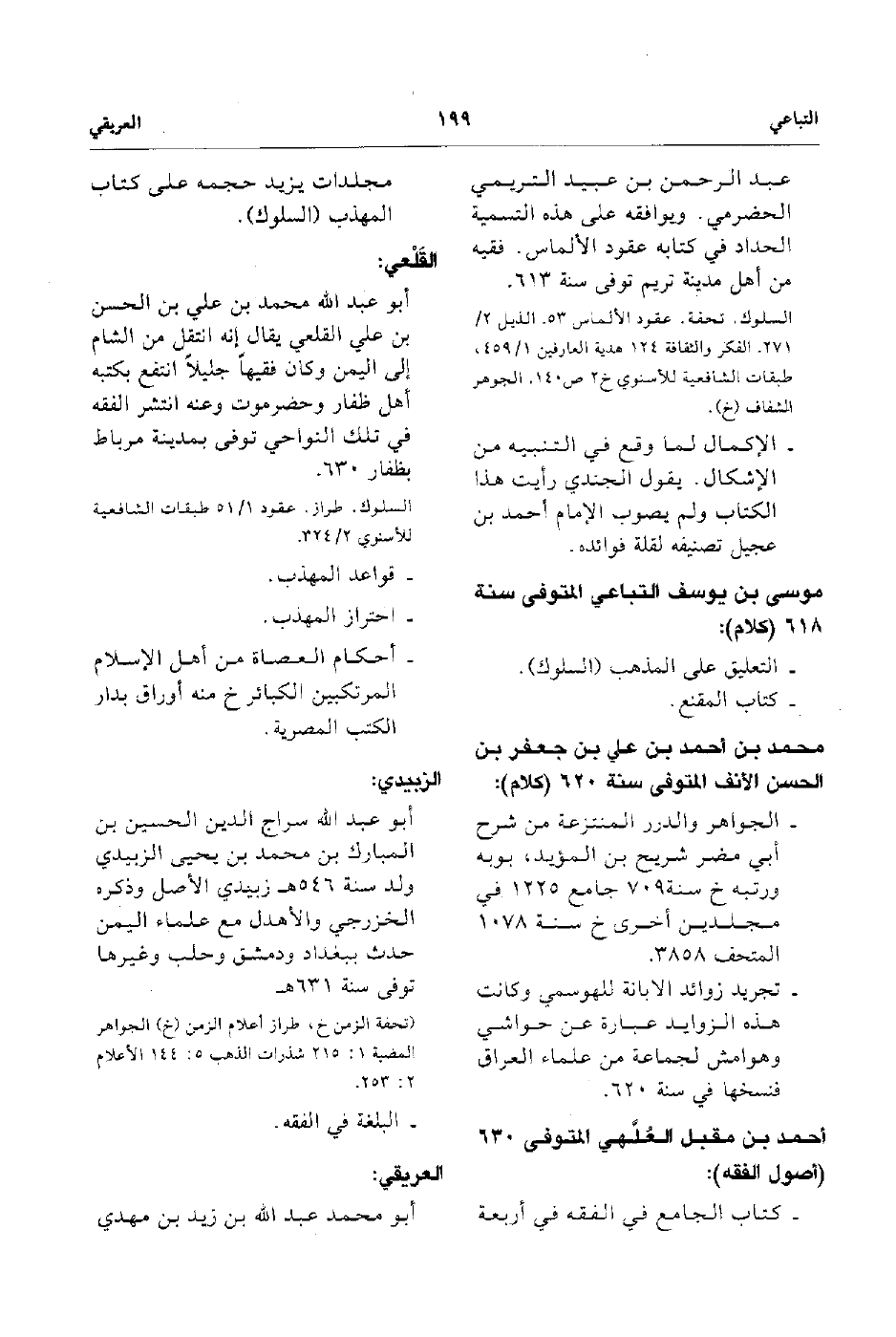 - أبو عبد الله سراج الدين الحسين بن المبارك بن محمد بن يحيى الزبيدي ولد سنة 546هـ زبيدي الأصل وذكره الخزرجي والأهدل مع علماء اليمن حدث ببعداد ودمشق وحلب وغيرها توفي سنة 631هـ. البلغة في الفقه.