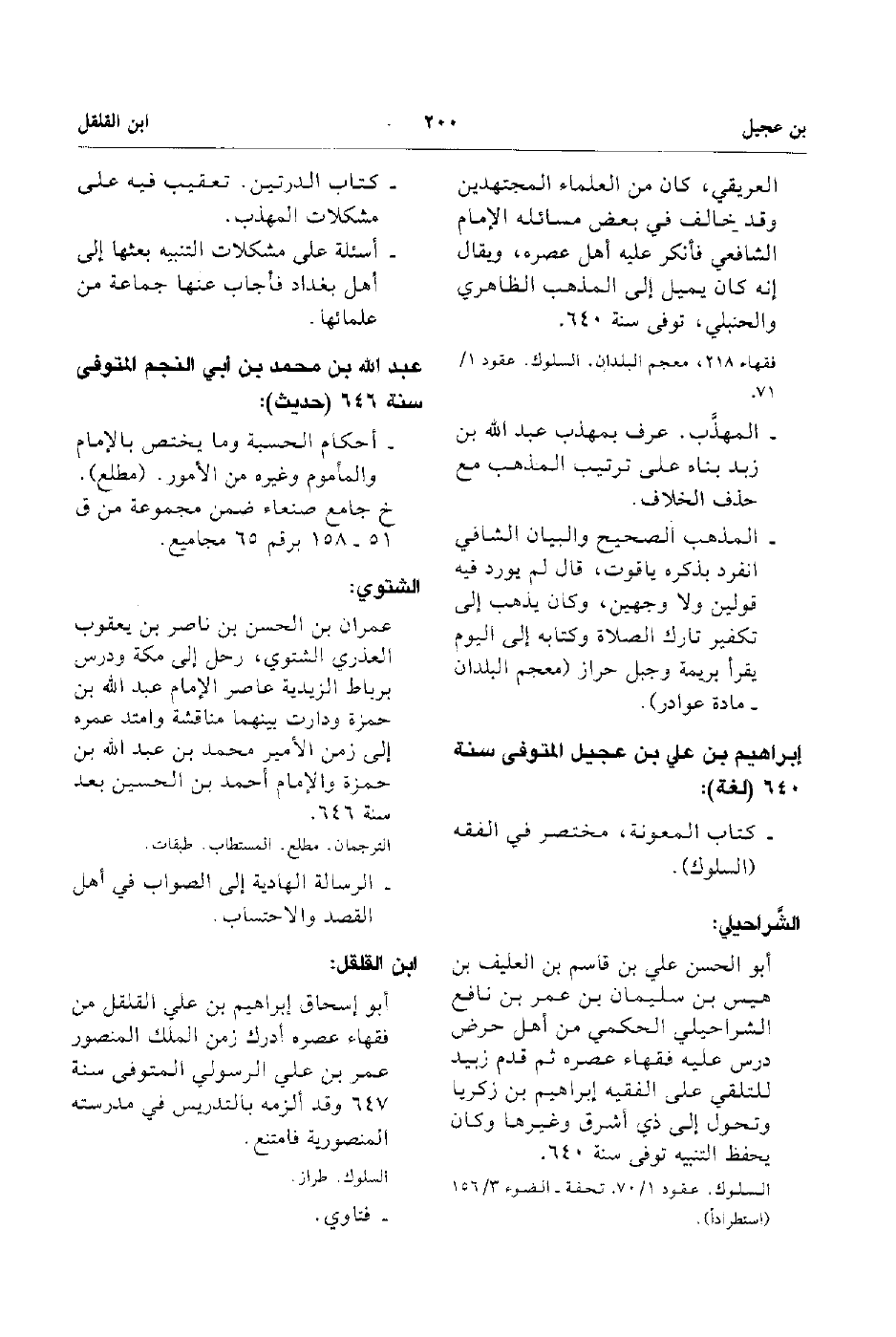 - أبو إسحاق إبراهيم بن علي القلقل من فقهاء عصره أدرك زمن الملك المنصور عمر بن علي الرسولي المتوفي سنة 647 وقد ألزمه بالتدريس في مدرسته المنصورية فامتنع. فتاوي.