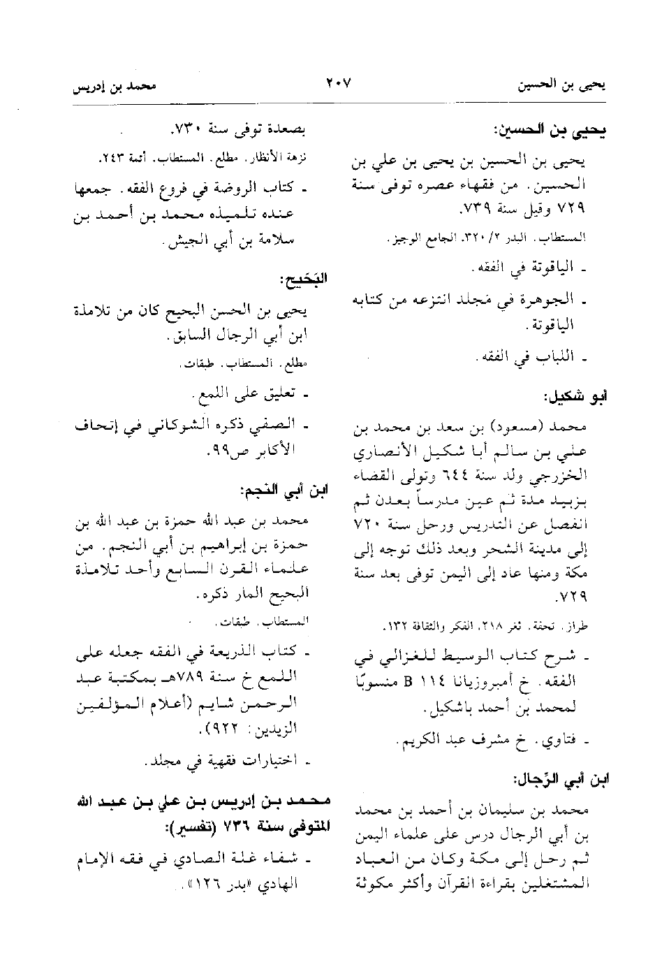 - يحيى بن الحسين بن يحيى بن علي بن الحسين من فقهاء عصره توفى سنة 729 وقيل سنة 739.