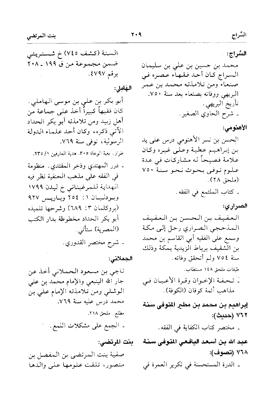 - محمد بن حسين بن علي بن سليمان السراج كان أحد فقهاء عصره في صنعاء ومن تلامذته محمد بن عمر البريهي ووفاته بصنعاء بعد سنة 750 تأريخ البريهي. شرح الحاوي الصغير.