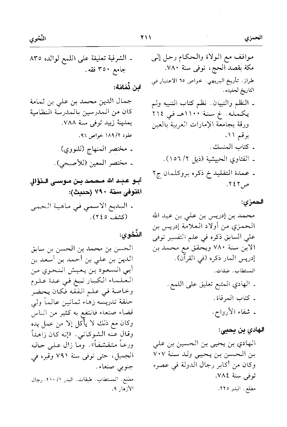 - جمال الدين محمد بن علي بن ثمامة كان من المدرسين بالمدرسة النظامية بمدينة زبيد توفي سنة 788.