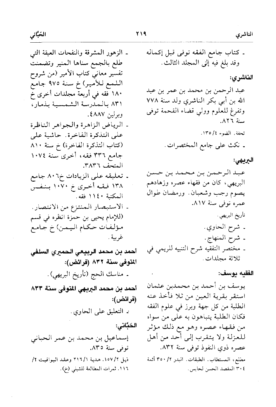 - إسماعي بن محمد بن عمر الحباني توفى سنة835.