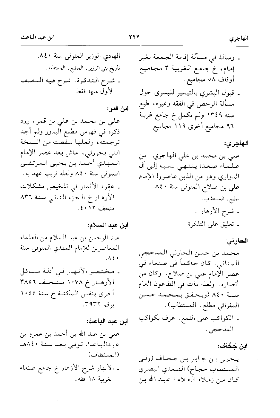 - يحيى بن جابر بن جحاف وفي المستطاب حجاج الصعدي البصري كان من زملاء العلامة عبد الله بن الهادي الوزير المتوفى سنة 840. شرح التذكرة شرح فيه النصف الأول منها فقط.