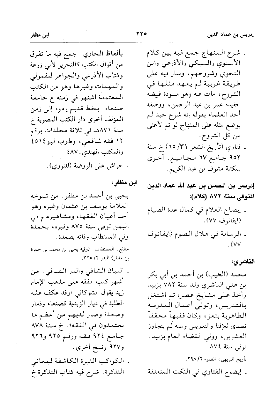 إدريس بن الحسن بن عبد الله عماد الدين المتوفى سنة 872 كلام: