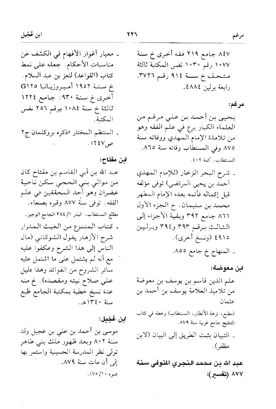 - يحيى بن أحمد بن علي مرغم من العلماء الكبار برع في علم الفقه وهو من تلامذة الإمام المهدي ووفاته سنة 875 وفي المستطاب وفاته سنة 865.