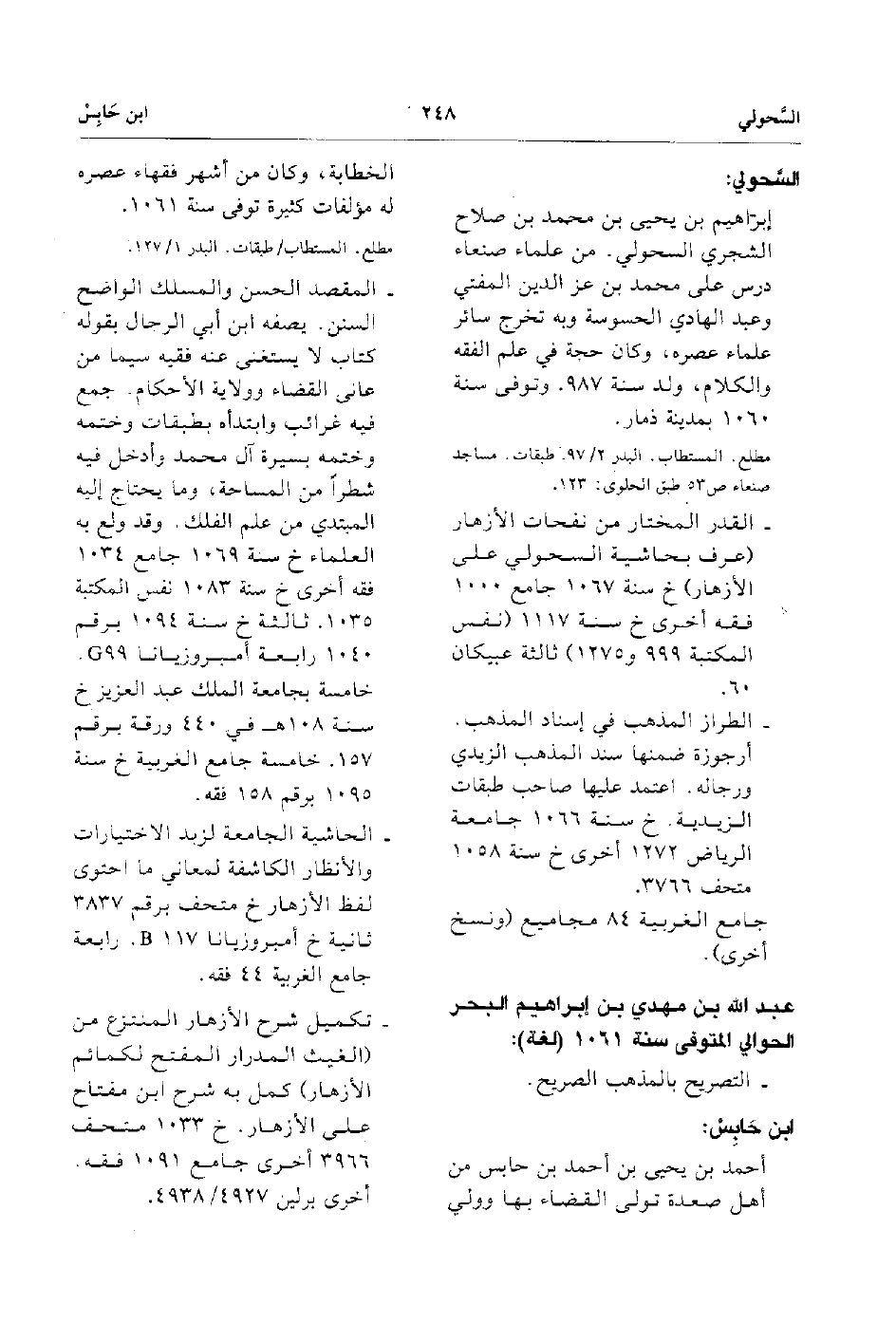 - القدر المختار من نفحات الأزهار عرف بحاشية السحولي على الأزهار خ سنة 1068 جامع 1000 فقه أخري خ سنة 1117 نفس المكتبة 999و 1275 ثالثة عبيكان 60.