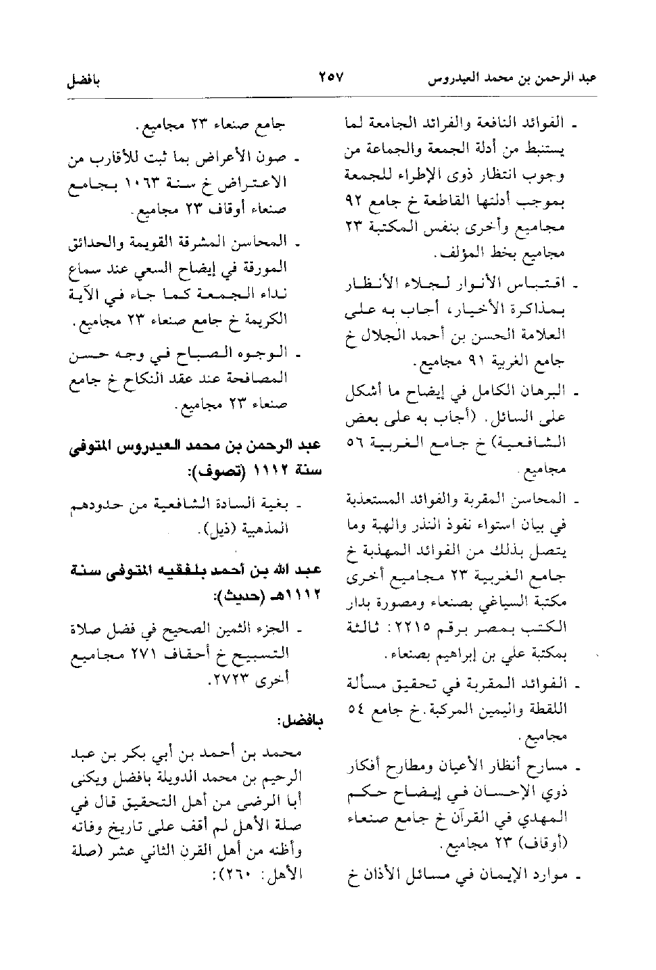 عبد الرحمن بن محمد العيدروس المتوفى سنة 1112 تصوف: