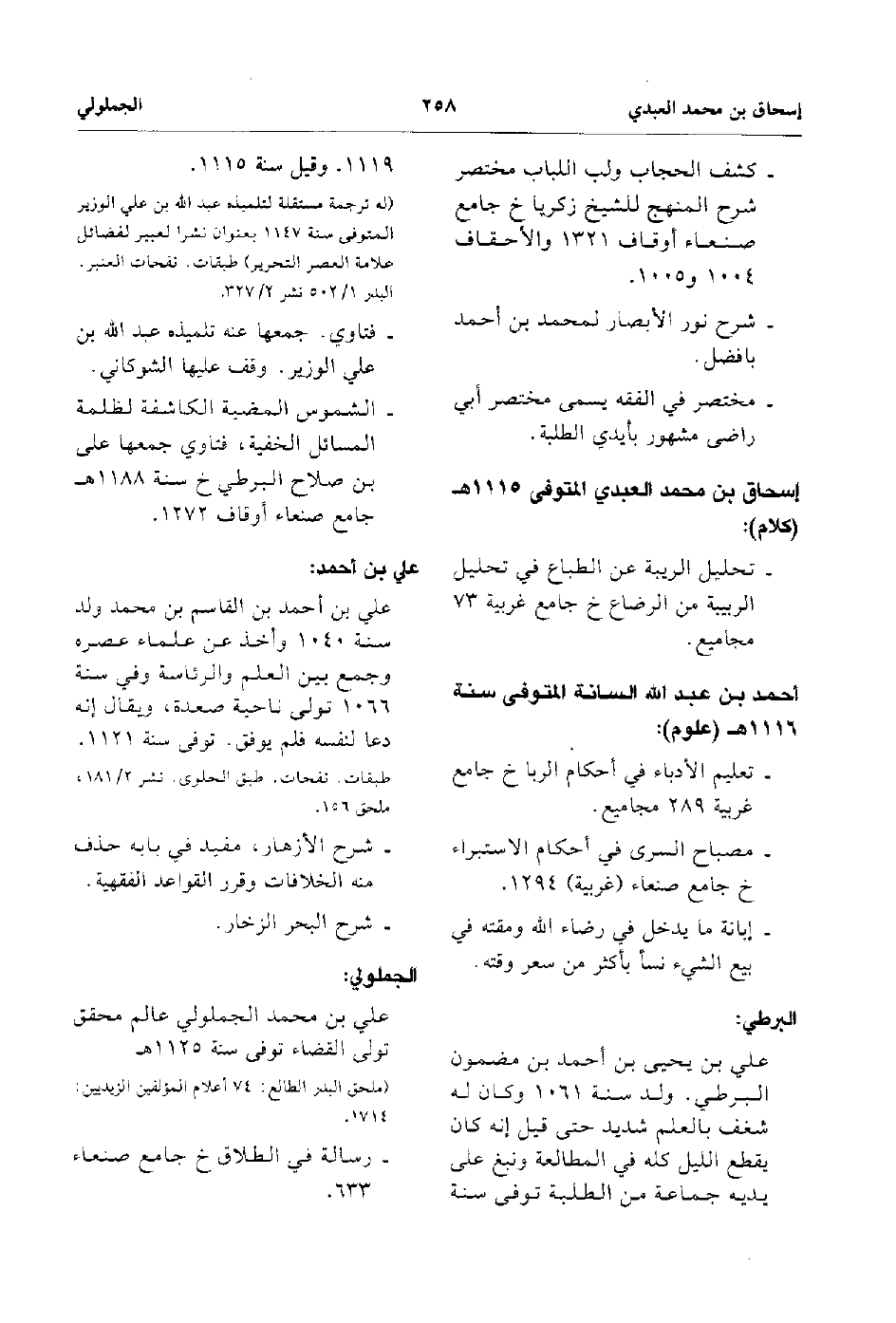 احمد بن عبد الله السانة المتوفى سنة 1116 هـ علوم: