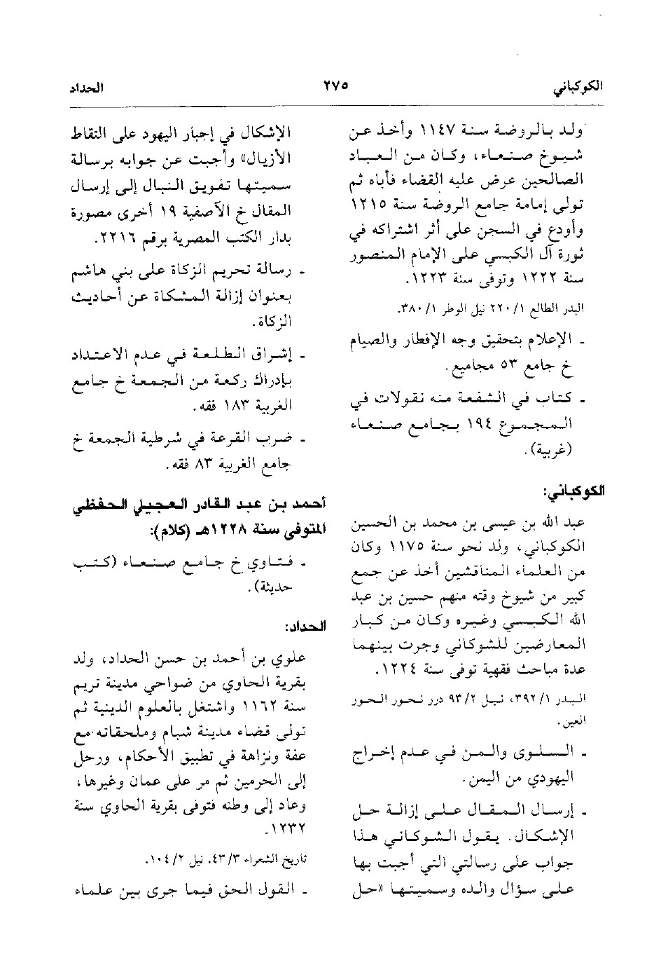 - عبد الله بن عيسى بن محمد بن الحسين الكوكباني ولد نحو سنة 1175 وكان من العلماء المناقشين أخذ عن جمع كبير من شيوخ وقته منهم حسين بن عبد الله الكبسي وغيره وكان من كبار المعارضين للشوكاني وجرت بينهما عدة مباحث فقهية توفى سنة 1224.
