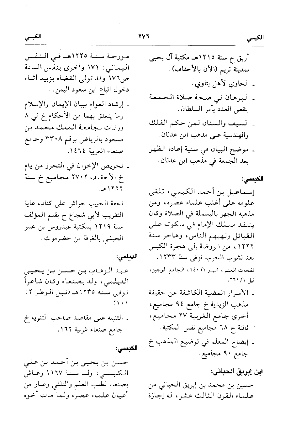 - حسن بن يحيى بن أحمد بن على الكبسي ولد سنة 1167 وعاش بصنعاء لطلب العلم والتلقي وصار من أعيان علماء عصره ولما مات أخوخ.