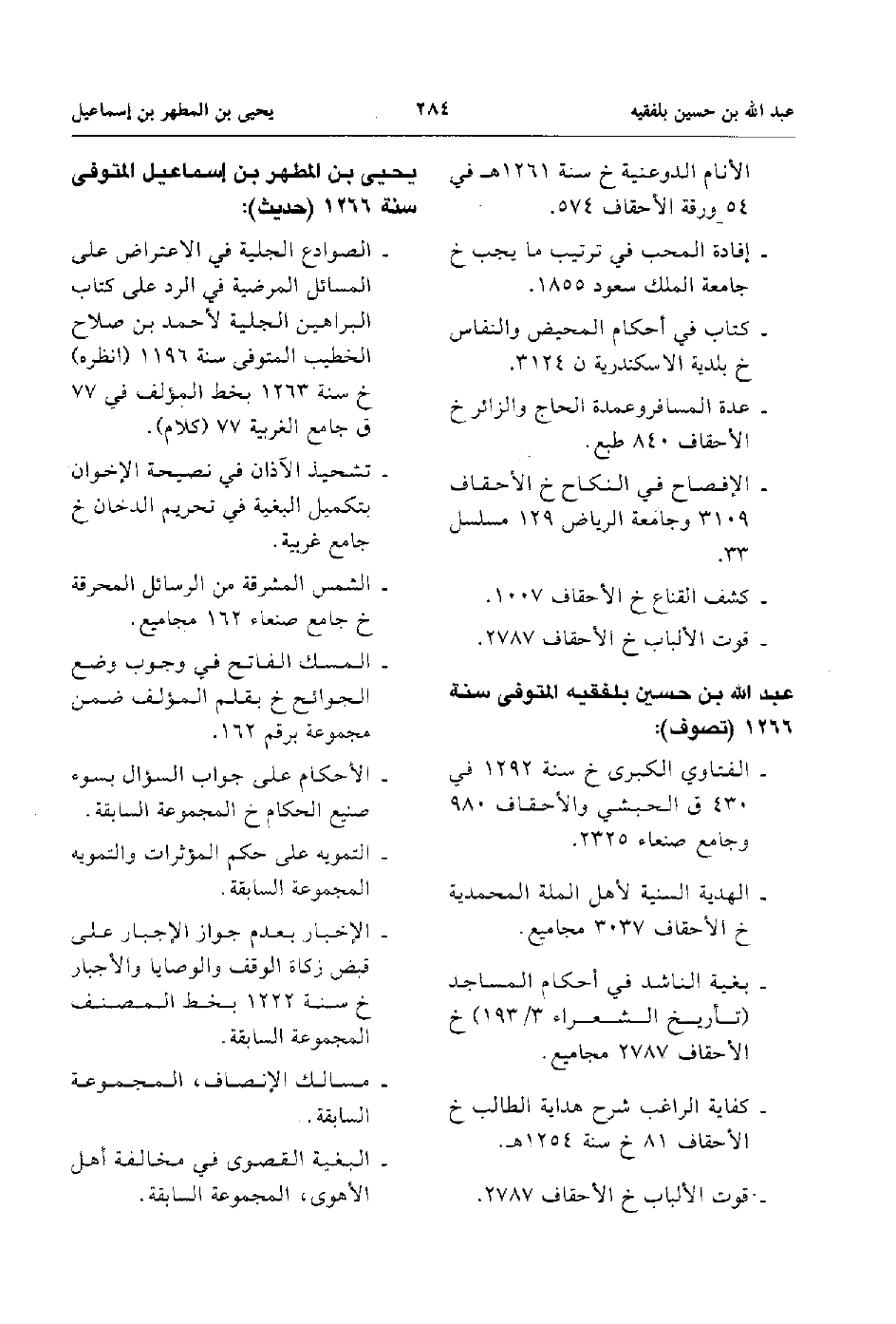 - عدة المسافر وعمدة الحاج والزائر خ الأحقاف 840 طبع.