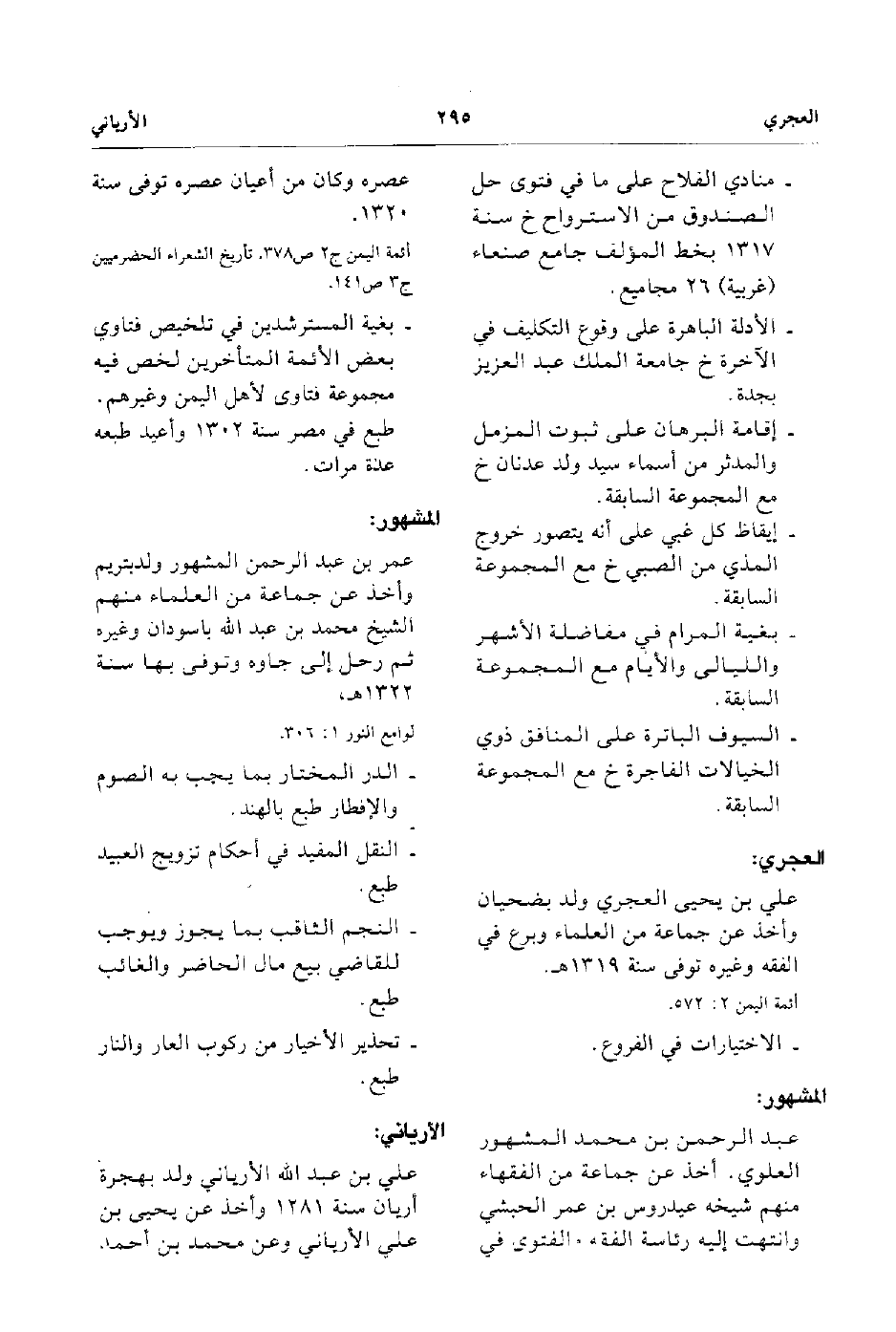 - علي بن عبد الله الأرياني ولد بهجرة أريان سنة 1281 وأخذ عن يحيى بن علي الأرياني وعن محمد بن أحمد.