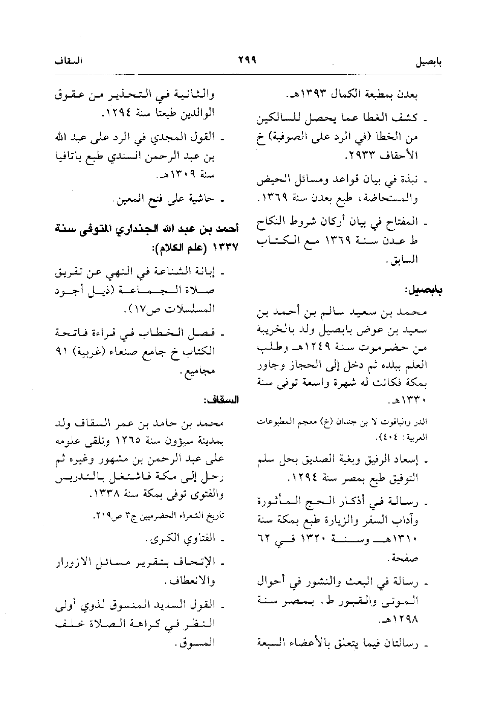 - محمد بن حامد بن عمر السقاف ولد بمدينة سيؤون سنة 1265 وتلقي علومه على عبد الرحمن بن مشهور غيره ثم رحل إلى مكة فاشتغل بالتدريس والفتوي توفى بمكة سنة 1338. الفتاوي الكبري.