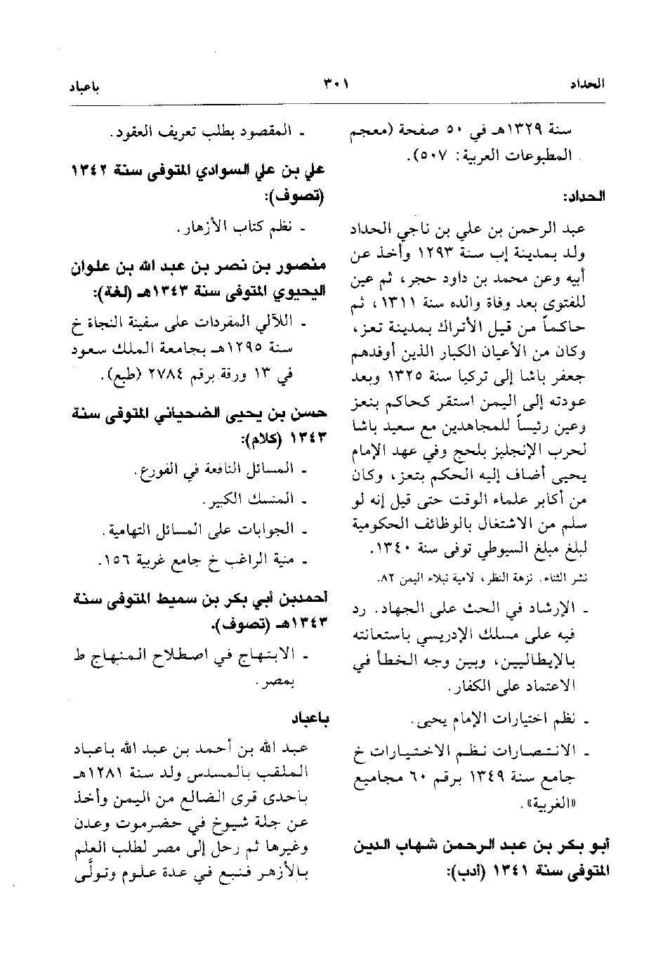 - عبد الله بن أحمد بن عبد الله باعباد الملقب بالمسدس ولد سنة 1281هـ باحدي قري الصالع من اليمن وأخذ عن جلة شيوخ في حضرموت وعدن وغيرها ثم رحل إلى مصر لطلب العلم بالأزهر فنبع في عدة علوم وتولي.