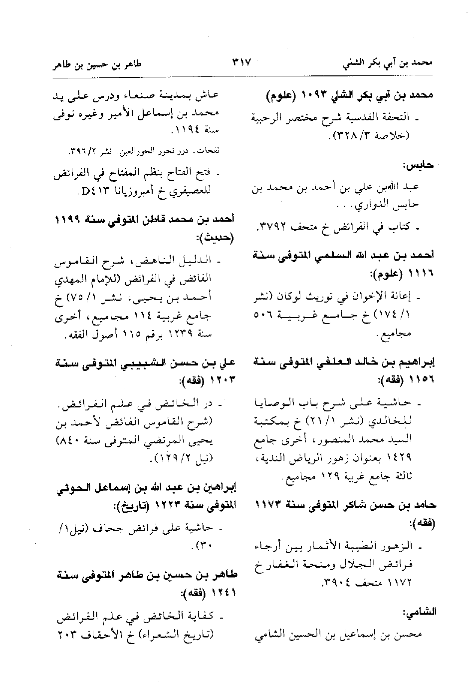 طاهر بن حسين بن طاهر المتوفى سنة 1241 فقه: