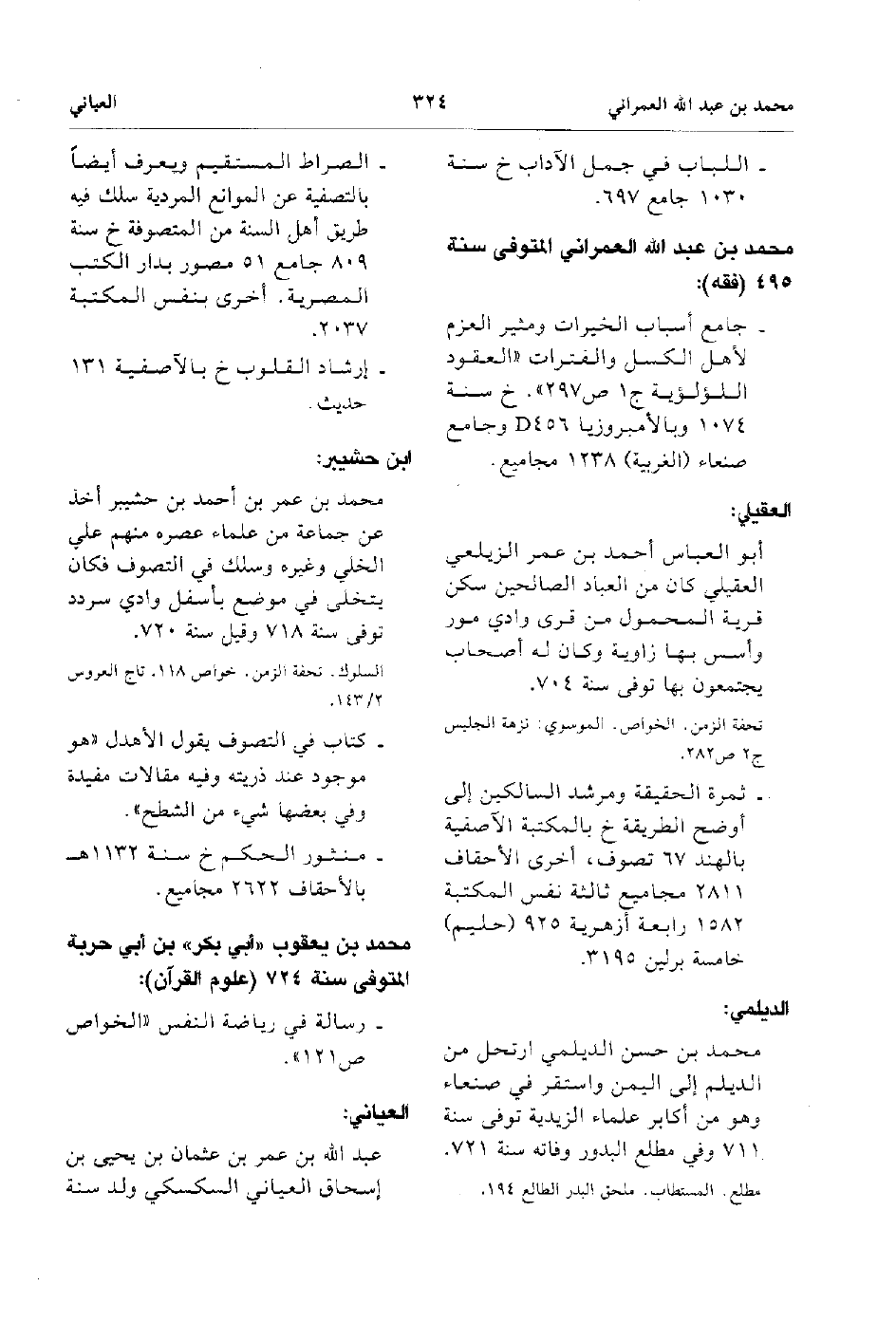 محمد بن عبد الله العمراني المتوفى سنة 495 فقه: