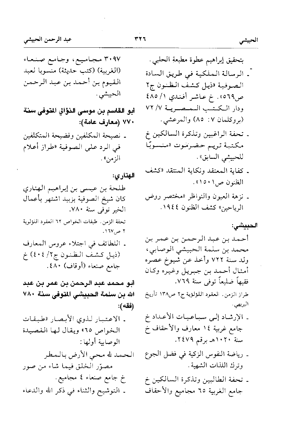 - تحفة الراعبين وتذكرة السالكين خ مكتبة تريم حضر موت منسوبا للحبيشي السابق.