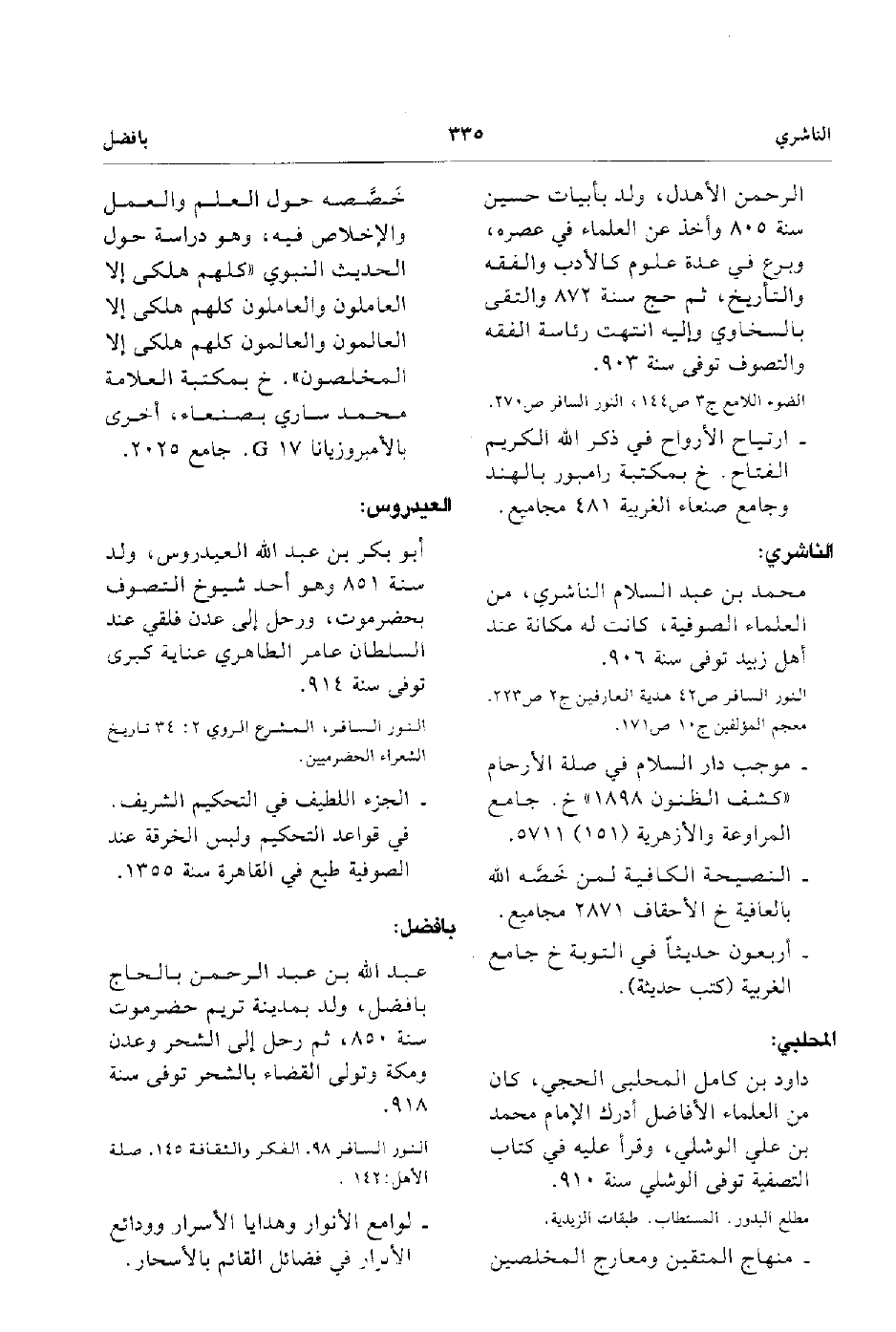 - عبد الله بن عبد الرحمن بالحاج بافضل ولد بمدينة تريم حضر موت سنة 850 ثم رحل إلى الشحر وعدن ومكة وتولي القضاء بالشحر توفى سنة 918.