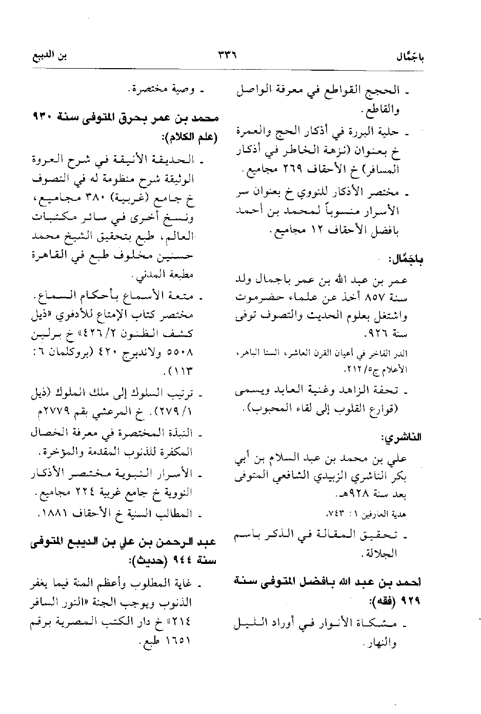 محمد بن عمر بحرق المتوفى سنة 930 علم الكلام: