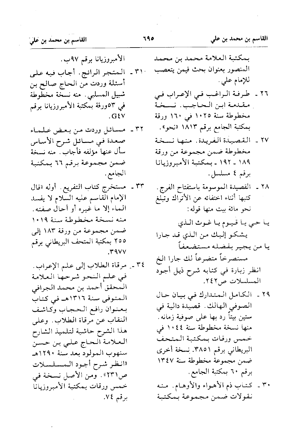 30. كتاب ذم الأهواء والأوهام منه نقولات ضمن مجموعة بمكتبة الأمبروزيانا برقم 97 ب.