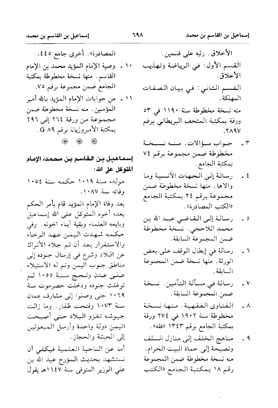 10. وصية الإمام المؤيد محمد بن الإمام القاسم منها نسخة مخطوطة بمكتبة الجامع ضمن مجموعة برقم 75.